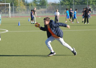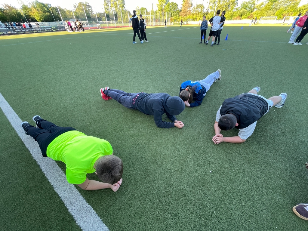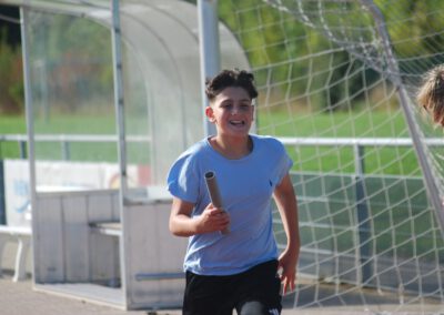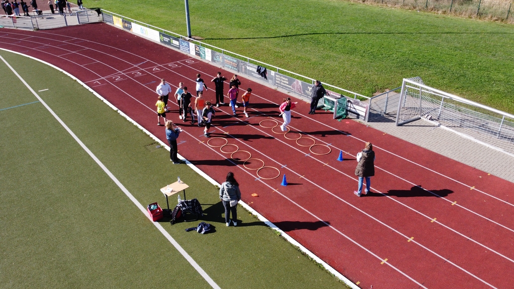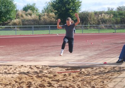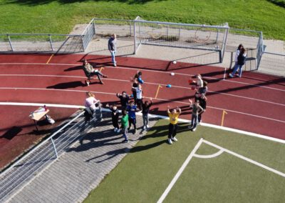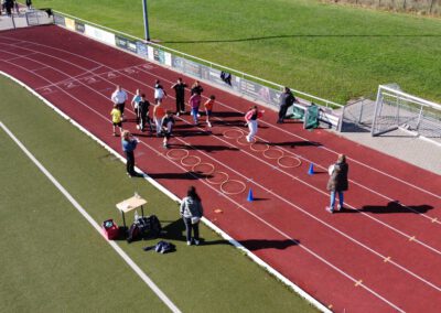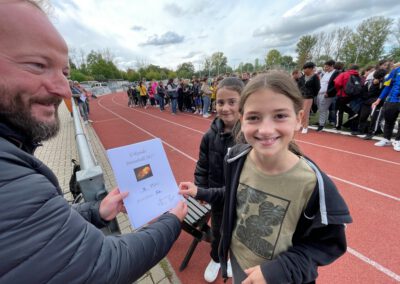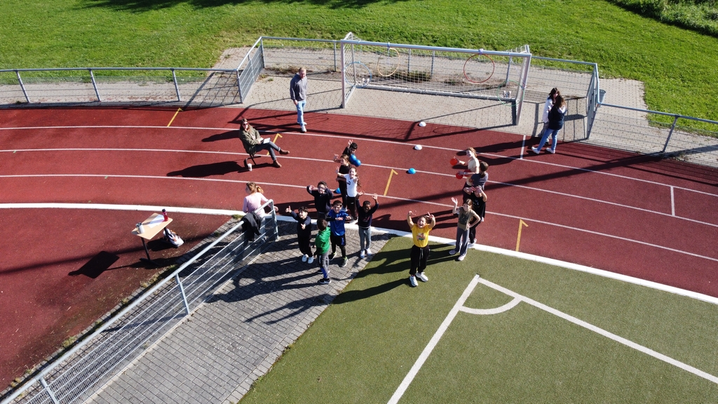 Dabei liefen die Schülerinnen und Schüler zum Beispiel über Bananenkisten-Hürden, warfen Softbälle durch Reifen und sprangen in verschiedene Zonen der Weitsprunggrube. Klassenweise wurde dabei um Punkte gekämpft. Mit viel Freude, Ausdauer und Einsatzbereitschaft erzielten die Kinder tolle Ergebnisse.
