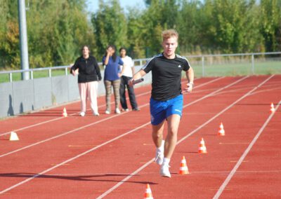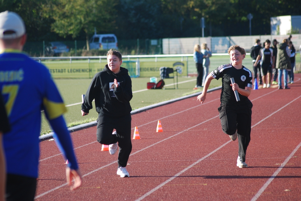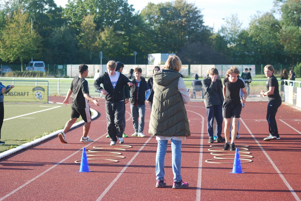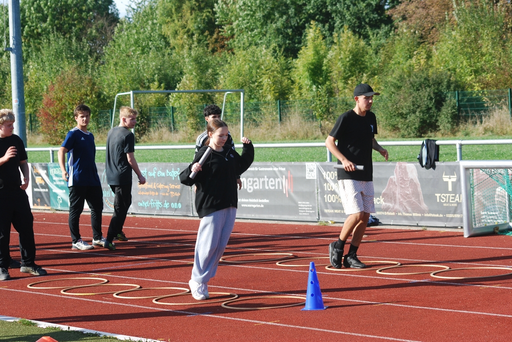 Am Dienstag, den 23. September 2025, fand nach einjähriger Pause das Sportfest der Theodor-Heuss-Hauptschule statt. Im Lechenicher Hennes-Weisweiler-Sportpark konnten sich die Schülerinnen und Schüler an sechs Leichtathletik-Stationen in den Disziplinen Laufen, Springen und Werfen messen.