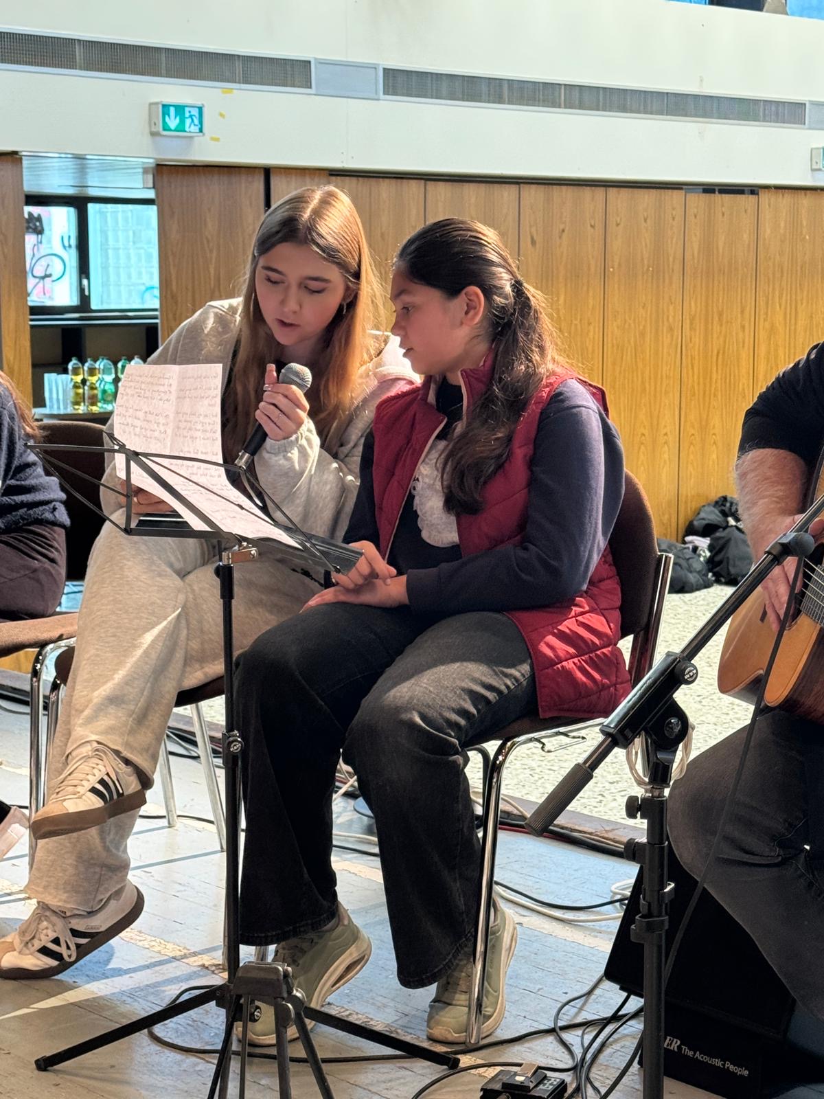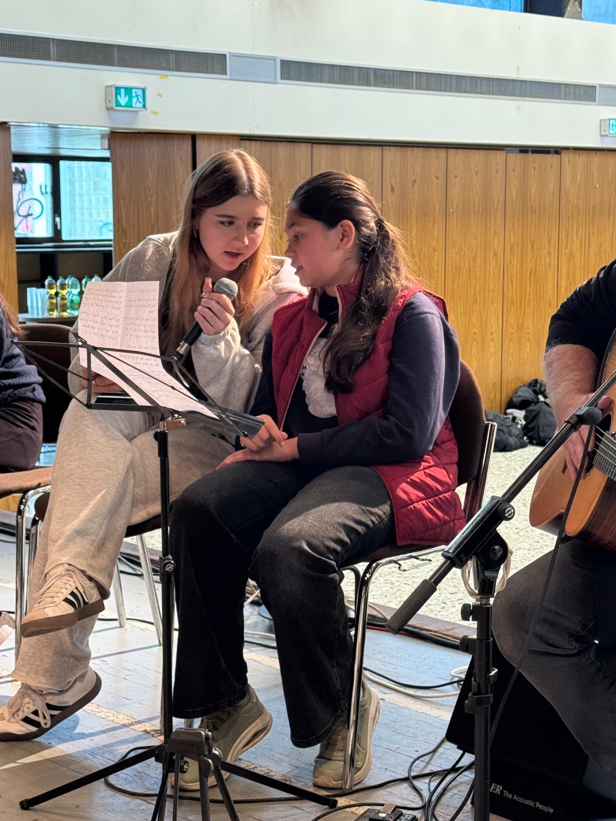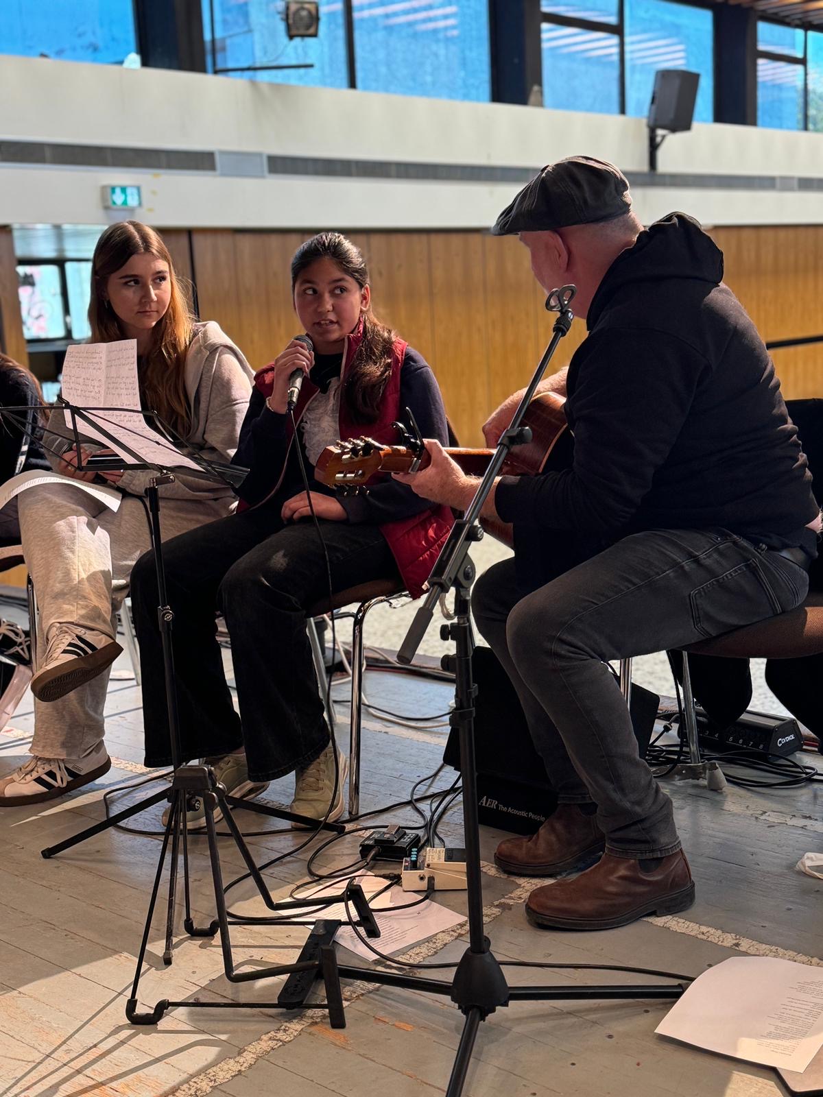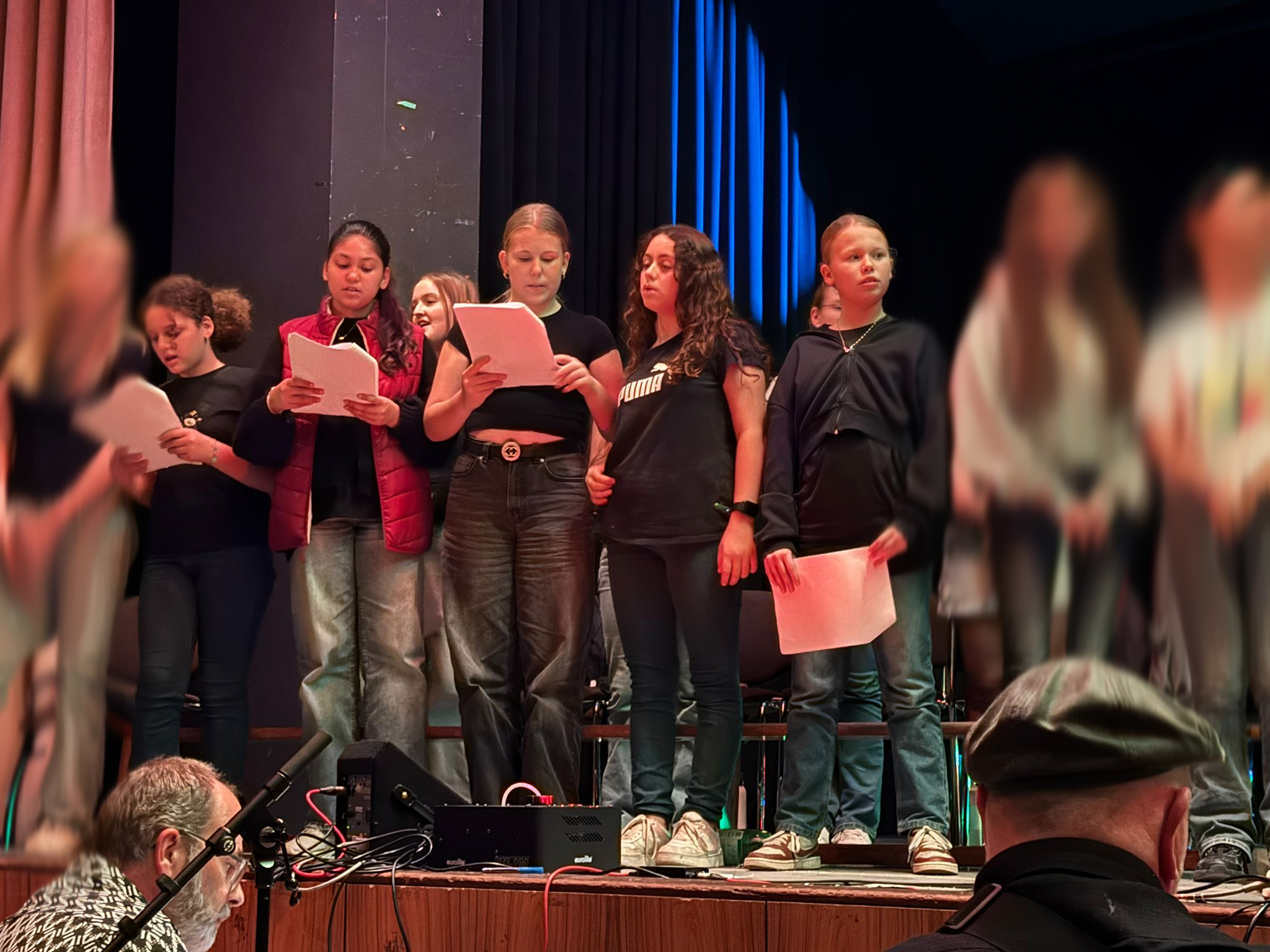 Am Donnerstagabend, dem 6. November 2025, fand in der Aula unseres Schulzentrums das Workshopkonzert „Sing it out loud“ unter der Leitung vom kanadischen Sänger und Songwriter Paul O’Brien statt. Vorausgegangen war eine gemeinsame Projektarbeit mehrerer Erftstädter Schulen. Drei Tage lang probten Schülerinnen und Schüler unterschiedlicher Altersstufen zusammen mit Lehrkräften ein abwechslungsreiches Programm ein – von moderner Musik bis hin zu Klassikern wie Lieder von John Lennon und Michael Jackson.